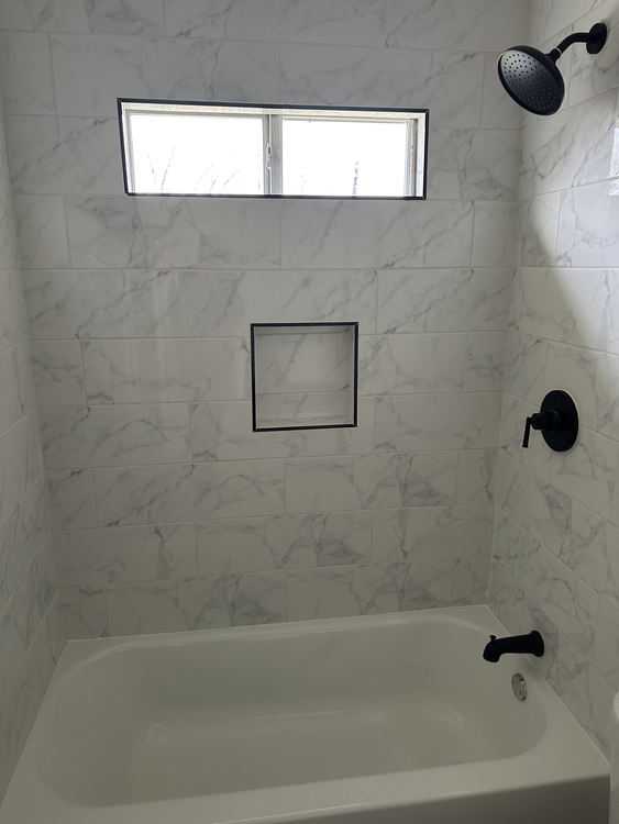 • Custom Tile Artistry: Beyond standard installation, we specialize in intricate patterns, waterjet-cut marble mosaics, and precise placement of high-end materials, turning shower walls and floors into architectural focal points.